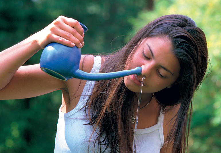 Neti, nässköljning, kan du göra dagligen under retreaten. Det renar luftvägarna, förebygger allergi och förkylning och gör det lättare att göra andningsövningar (se mer om nässköljning här).