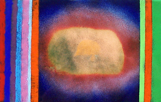 Nu kommer det ögonblick som kräver att du bevarar den avspända ron och samtidigt förblir ytterst uppmärksam. Under ett kort tidsförlopp kommer du att se din kropps gyllene form gradvis försvinna från din inre blick. Håll kvar formen så länge du kan, och se samtidigt vad som förtränger den. Vilka former skjuter sig in över den? Eller blir kanten suddig och löses upp? Ändrar sig den gyllene bakgrunden inuti formen så att den blir till en annan färg, som till sist smälter samman med omgivningarna? Vilka färger ser du under denna korta tidsrymd? Vilken färg dominerar, särskilt när den gyllene formen försvinner? Det kan vara olika från gång till gång.
