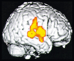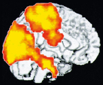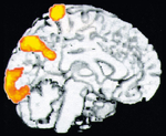 På dessa bilder är det den främre delen av hjärnan, vilken står för den överordnade styrningen, som är aktiv. Den ser bl.a. till att vi kan fungera i ett komplext samhälle, då den "tar ställning" till signaler från de djupare känslomässiga och instinktiva delarna av hjärnan.