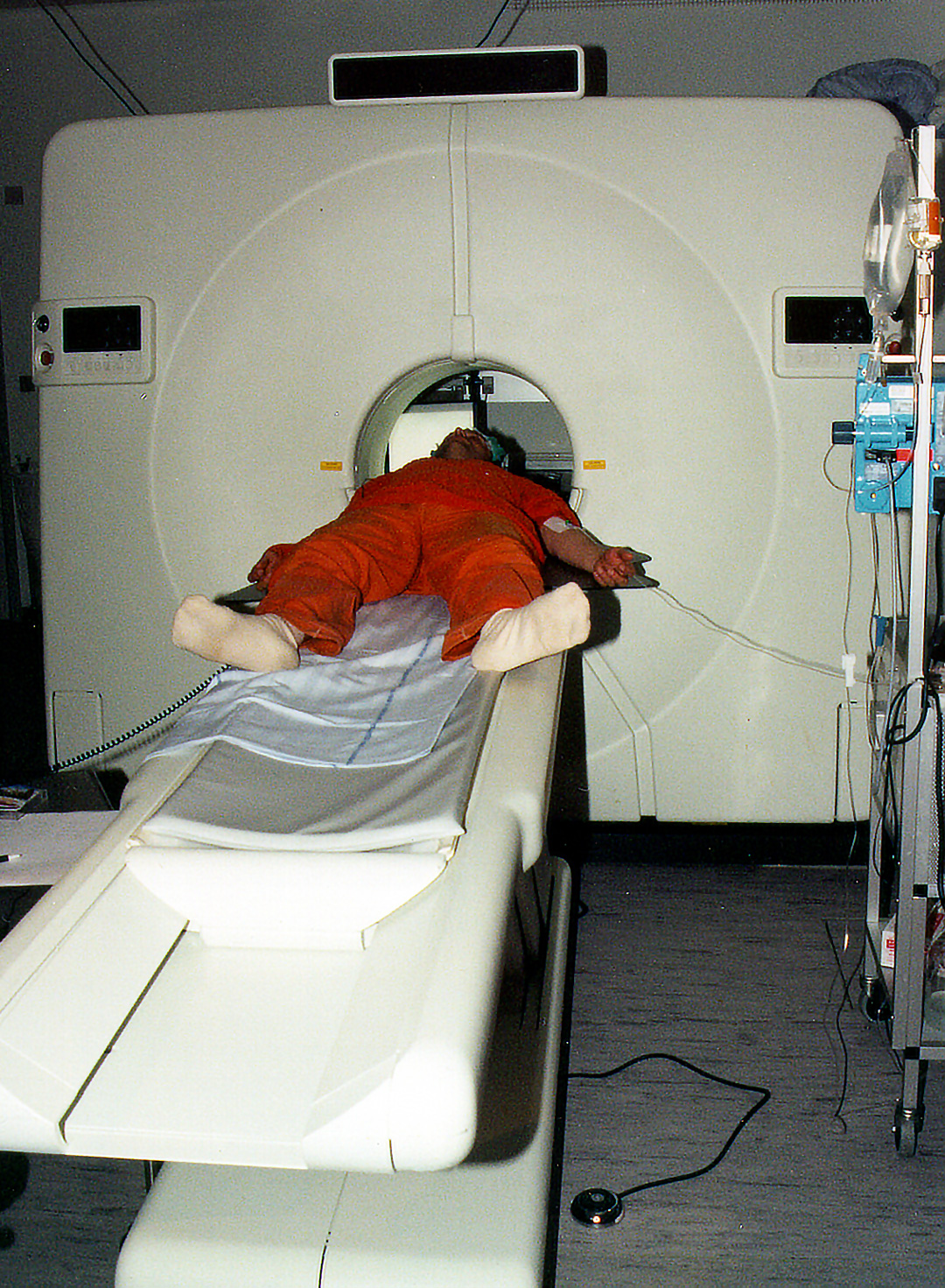 Försökspersonerna lade sig en åt gången i PET-scannern.