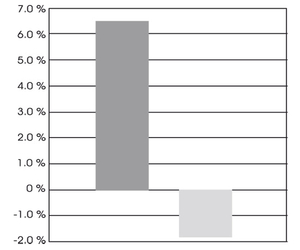 Under samma tid blev kontrollgruppen ca 2 % sämre (ljusgrå pelare).