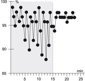 Syremättnaden återgick på några sekunder till 97% efter att övningen avslutats.