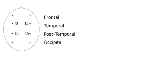 I denna undersökning redovisar vi de fyra mätpunkterna (T3-T6) på tinningloberna.