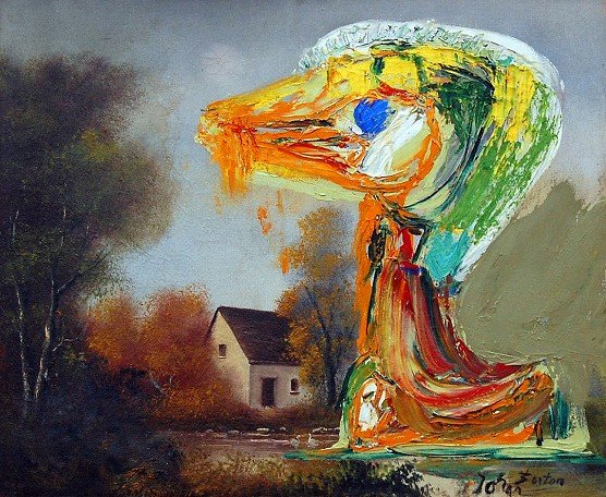 Asger Jorn, Le canard inquiétant (Den oroväckande ankungen) Olja på duk (modifikation), 53 x 64,5 cm – Museum Jorn, Silkeborg, © Donation Jorn, Silkeborg