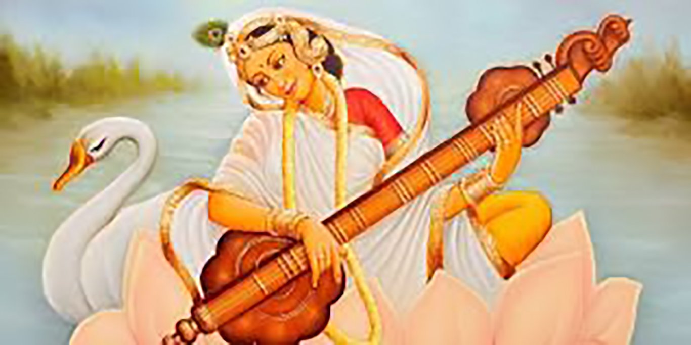 I den indiska kulturen får vi en liknande kraft, eller shakti, presenterad: den är samlad i en gestalt, nämligen gudinnan Saraswati. Hon står som stöd till, eller energi bakom, all kunskap och lärdom, bakom vetenskap, poesi, målarkonst och musik, bara för att nämna några av hennes attribut; men hon står också bakom den visdom och kreativitet som behövs för att förmedla yoga och meditation. Kan det vara därför en av swami-ordens fyra grenar bär hennes namn: Saraswati?