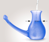 När hälften av vattnet runnit igenom, snyt dig lätt (se punkt 6). Häll sedan resten av vattnet in genom den andra näsborren.